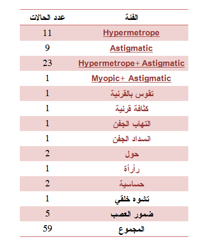 الحالات المرضية التي نتجت عن كشف العيون في منطقة البقاع: