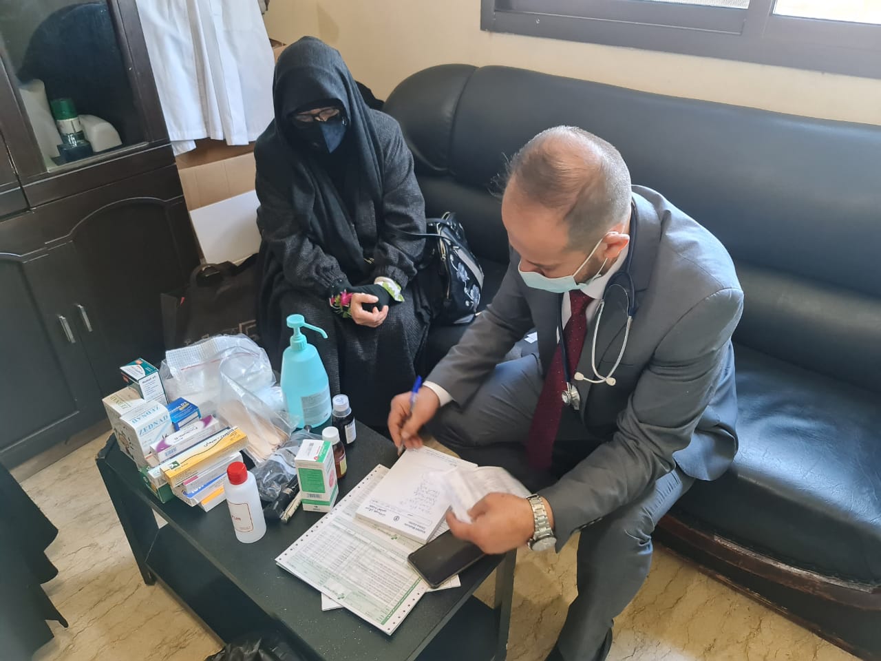 وكذلك تم اجراء 31 فحص مخبري و توزيع حوالي 300 وحدة دواء مجاني