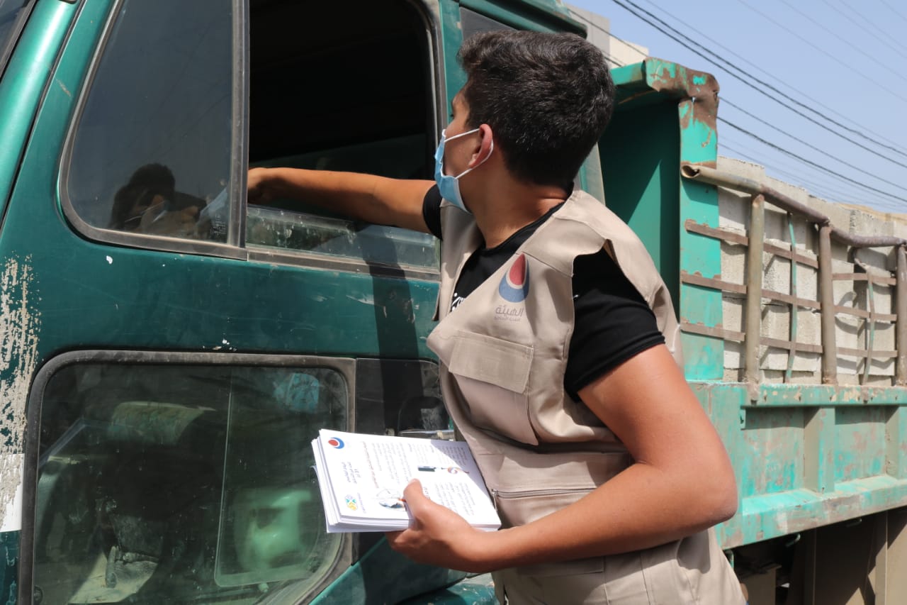 حاجز محبة لتوزيع بروشورات توعوية حول مضار التدخين أمام مركز صديقين الصحي